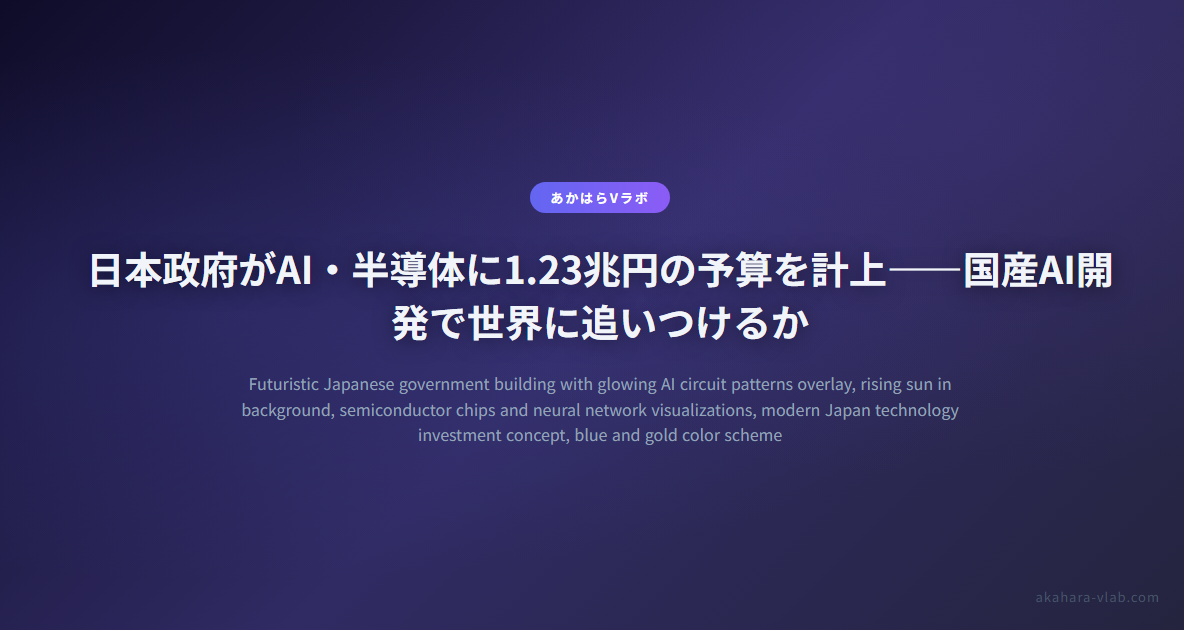 最近、日本のAI政策がどんどん動いていますよね。2025年12月末に日本政府が2026年度予算案を閣議決定したんですが、その中身がかなり本気でびっくりしました。経済産業省が半導体とAI分野に1兆2390億円を計上したんです。前年度比でおよそ4倍という、異次元の伸び率です。