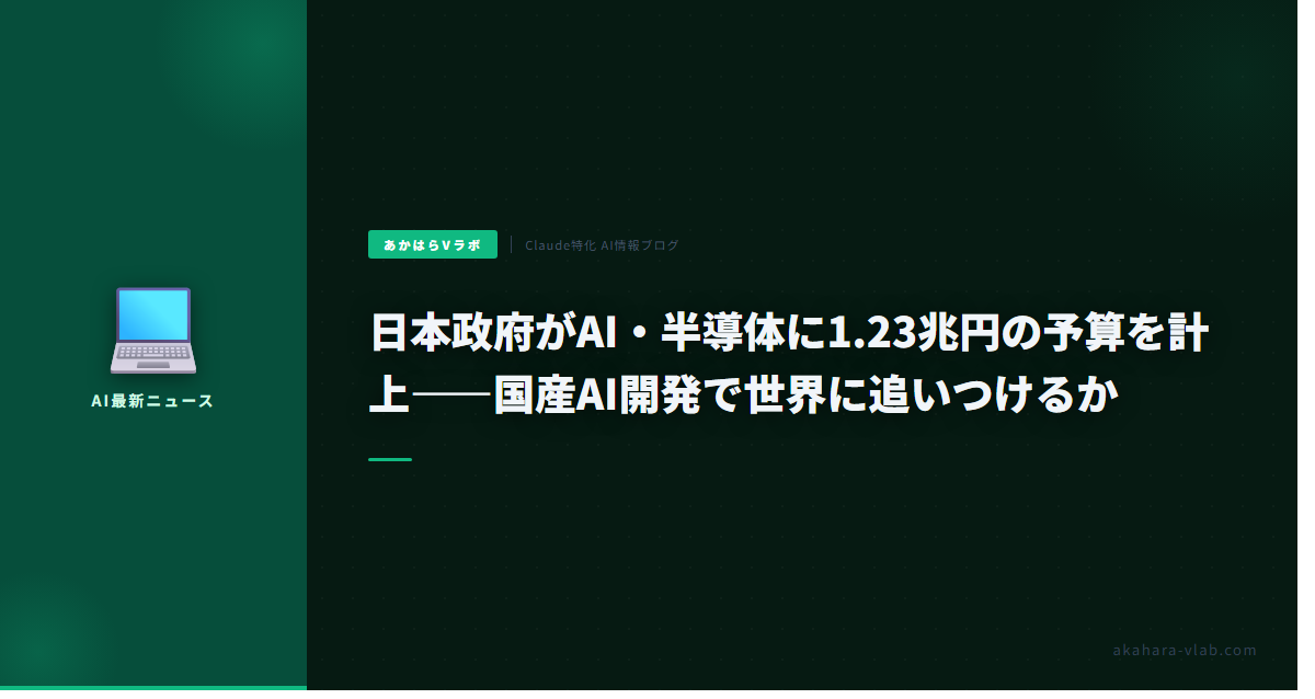 日本政府の1.23兆円予算、Rapidus支援やフィジカルAI開発に3873億円充てる本気度に驚く。ソフトバンクの民間2兆円と合わせ3兆円規模なら、計算インフラは一気に追いつきそう。ただ、わさびの実感から断言するが、お金とインフラだけじゃAI大国は無理だ。2025年12月からClaude Codeを使い始めて4ヶ月、akahara-vlabのRSS収集からWP投稿・X拡散まで全自動パイプラインを構築し224記事公開したように、AIをコードで道具化してシステムを回せるエンジニアの数が勝負を決める。