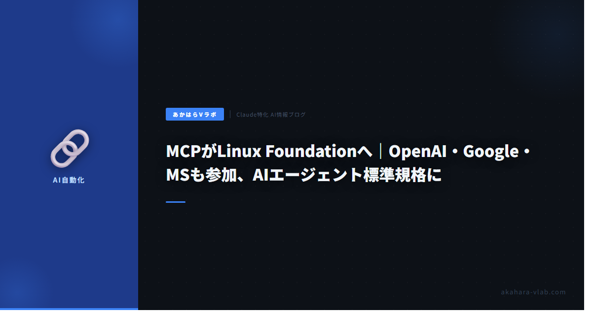 AIエージェントの世界で、大きな動きがあった。AnthropicがMCP(Model Context Protocol)をLinux Foundation傘下の新組織「Agentic AI Foundation(AAIF)」に寄贈すると発表した。