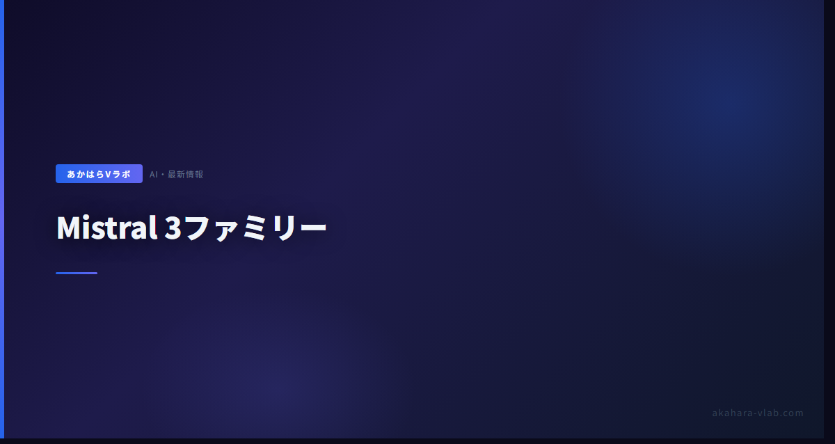 | Ministral 3 8B | 8B | Dense | エッジ(標準) | Apache 2.0 |