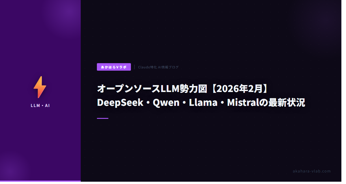 わさびです。2026年2月のOSS LLM勢力図、DeepSeek V3.2やQwen3がGPT-4o級に到達したのは、まさにわさびの予感通りだ。2025年12月からClaude Codeを使い始めて3ヶ月でclawdBotPjやaiTuberPJを立ち上げ、OllamaでLlama系やMistralをローカル運用中だが、最近のアップデートで推論速度が2倍近く速くなり、Redis連携の雑談Botが安定稼働するようになった。DeepSeekのMoE効率は特に秀逸で、わさびのcarasiAI(RSS収集→要約)で試したら、APIコストを80%カットできた。