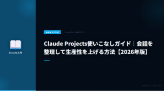 AI・自動化Claude Projects使いこなしガイド|会話を整理して生産性を上げる方法【2026年版】 Claude Projectsの使い方を解説。プロジェクト作成、ナレッジ追加、カスタム指示の設定と活用例を紹介。 2026.02.17AI・自動化