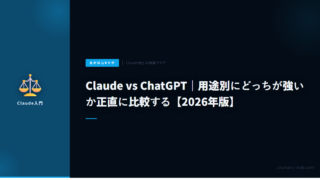AI・自動化Claude vs ChatGPT|用途別にどっちが強いか正直に比較する【2026年版】 ClaudeとChatGPTを用途別に正直比較。文章作成、コーディング、画像生成、検索、料金。2026年最新。 2026.02.17AI・自動化