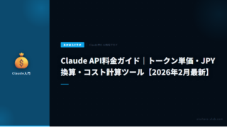 AI・自動化Claude API料金ガイド|トークン単価・JPY換算・コスト計算ツール【2026年2月最新】 Claude APIの最新料金を日本円で解説。Opus 4.6・Sonnet 4.6・Haiku 4.5のトークン単価、バッチAPI・プロンプトキャッシュの節約術、ページ内コスト計算ツール付き。 2026.02.17AI・自動化