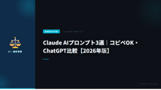 AI・自動化Claude AIプロンプト3選|コピペOK・ChatGPT比較【2026年版】 Claude AIの実用プロンプト3選をコピペ付きで紹介。文章校正・スライド構成・トーン調整の実行例とChatGPT・Gemini比較も。無料で今日から使えます。 2026.02.11AI・自動化