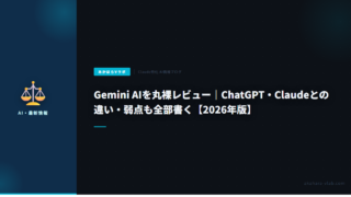AI・自動化Gemini AIを丸裸レビュー|ChatGPT・Claudeとの違い・弱点も全部書く【2026年版】 Google Geminiを辛口レビュー。ChatGPT・Claudeと比較して勝る点・劣る点を正直に解説。無料でどこまで使えるか、料金プラン、実用的な活用法まで2026年最新情報。 2026.02.13AI・自動化
