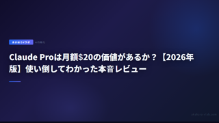 5Claude Proは月額$20の価値があるか?【2026年版】使い倒してわかった本音レビュー Claude Proプランを1ヶ月使い倒した本音レビュー。無料版との違い、ChatGPT Plusとの比較、20の価値があるかを正直に評価します。 2026.03.115