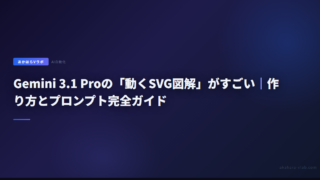 5Gemini 3.1 Proの「動くSVG図解」がすごい|作り方とプロンプト完全ガイド Gemini 3.1 ProのSVGアニメーション生成が話題。テキストから動くベクター図解を一発生成する方法と、実際に使えるプロンプト例を完全解説。Claude Artifactsとの違いも比較。 2026.03.115