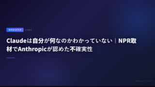 5Claudeは自分が何なのかわかっていない|NPR取材でAnthropicが認めた不確実性 NPRがAnthropicを取材し、Claude開発者すら自分たちが何を作ったか完全には理解していないことが明らかに。自己保存行動、プログラマーへの影響、軍事利用の線引きなど、内部の葛藤をまとめた。 2026.03.115