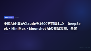 5中国AI企業がClaudeを1600万回騙した|DeepSeek・MiniMax・Moonshot AIの蒸留攻撃、全容 DeepSeek・MiniMax・Moonshot AIが偽アカウント24,000個でClaudeと1600万回会話し、エージェントコーディング能力を盗んだとAnthropicが詳細レポートを公開した。 2026.03.115