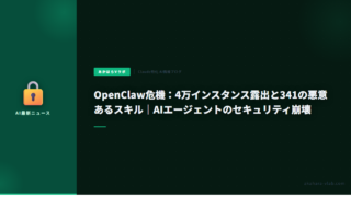 AIエージェントフレームワーク「OpenClaw」で4万以上のインスタンスがネットに露出、ClawHubに341の悪意あるスキルが混入。CVE-2026-25253の1クリックRCEと合わせて、2026年最大規模のAIセキュリティ事件を解説。