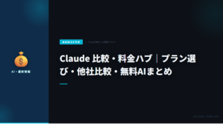 AI・自動化Claude 比較・料金ハブ|プラン選び・他社比較・無料AIまとめ Claudeの料金プラン比較、ChatGPT・Geminiとの違い、無料で使えるAIツールを目的別に整理。Free・Pro・Max・APIの選び方も解説。 2026.02.20AI・自動化