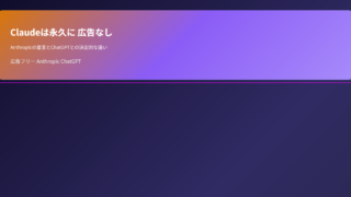 AI・自動化ChatGPTに広告が入った|無料ユーザーへの表示開始と、Anthropicが「広告なし」を貫く理由 OpenAIがChatGPTの無料・Goティアに広告表示を開始。最初のメッセージから表示され会話トピックに連動する。Anthropicの永久広告なし宣言との対比を解説。 2026.02.24AI・自動化