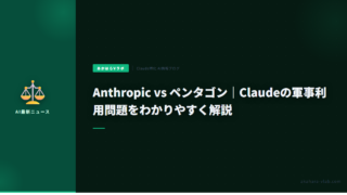 AI・自動化Anthropic vs ペンタゴン|Claudeの軍事利用問題をわかりやすく解説 Anthropicとペンタゴンの対立を解説。Claudeの軍事利用制限、2億ドル契約の行方、自律型兵器と監視をめぐる交渉の全容。2026年2月最新。 2026.02.17AI・自動化