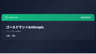 AI・自動化ゴールドマン・サックスがAnthropic採用|ウォール街バックオフィスをAIで自動化 ゴールドマン・サックスがAnthropicと提携しバックオフィス自動化を推進。OpenAIではなくClaudeを選んだ理由と、金融業界AI活用の最前線を解説。 2026.02.17AI・自動化