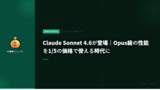 AI・自動化Claude Sonnet 4.6が登場|Opus級の性能を1/5の価格で使える時代に Claude Sonnet 4.6をAnthropicが2月17日にリリース。SWE-bench 79.6%でOpus 4.6に迫り、価格は入力$3/出力$15。無料ユーザーのデフォルトモデルに。ベンチマーク・料金・新機能を解説。 2026.02.18AI・自動化
