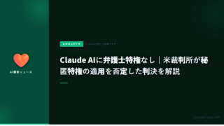 AI・自動化Claude AIに弁護士特権なし|米裁判所が秘匿特権の適用を否定した判決を解説 米連邦裁判所がClaude AIとの会話に弁護士・依頼者間秘匿特権は適用されないと判決。事実と影響を解説。 2026.02.17AI・自動化