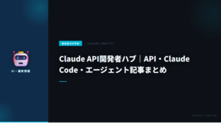 AI・自動化Claude API開発者ハブ|API・Claude Code・エージェント記事まとめ Claude APIを使った開発に関する記事を目的別にまとめたハブページ。料金・Tool Use・Batch・Streaming・RAG・Agent SDK・本番運用・Claude Code・MCP連携まで。 2026.02.20AI・自動化
