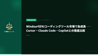 AI・自動化WindsurfがAIコーディングツール市場で急成長——Cursor・Claude Code・Copilotとの徹底比較 AIコーディングツール「Windsurf」が2026年に急成長。Cursor・Claude Code・GitHub Copilotとの機能・価格・ユースケースを徹底比較。エンジニア必見の選び方ガイド。 2026.02.24AI・自動化